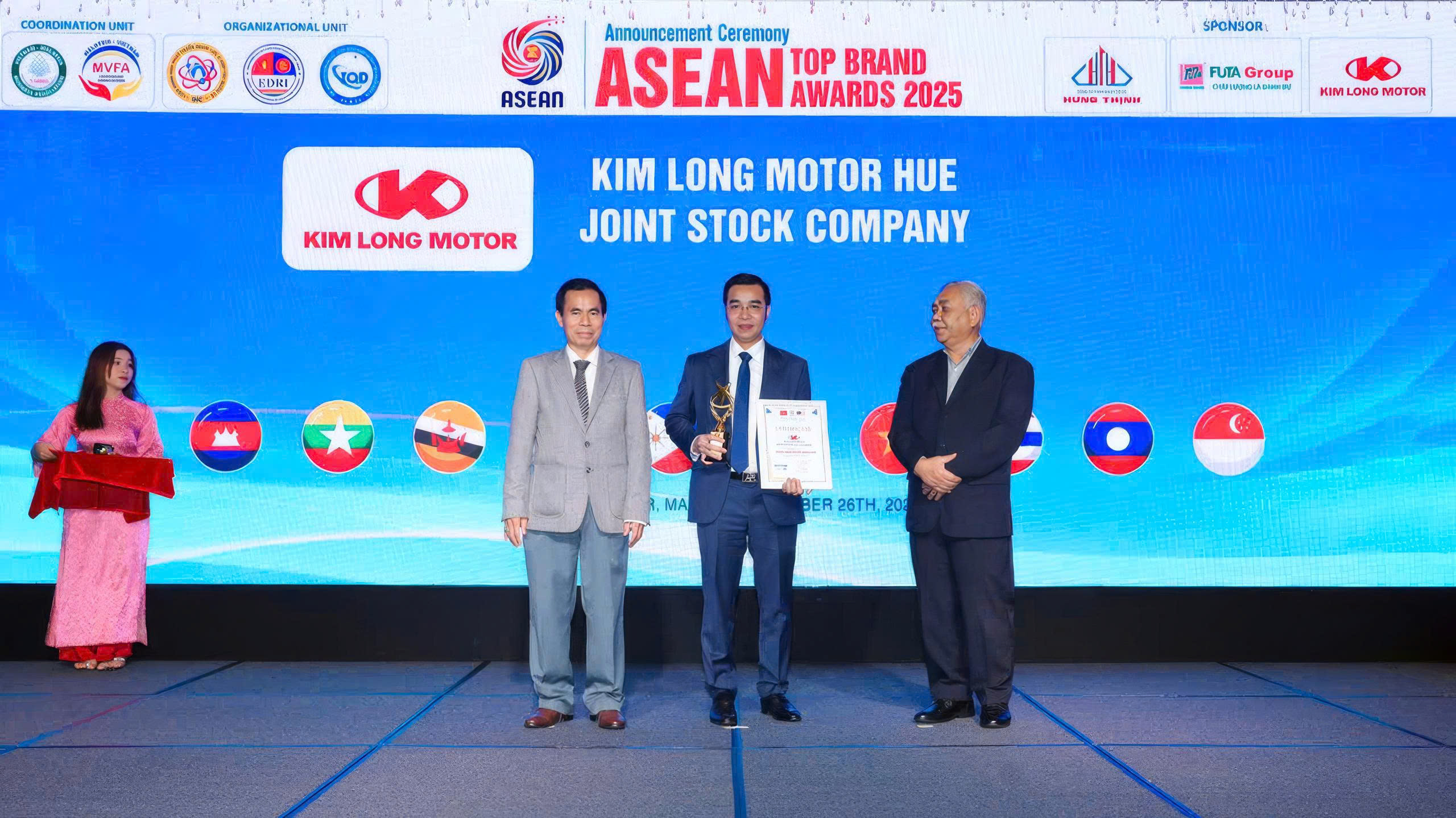 Vượt qua nhiều doanh nghiệp được đề cử, FUTA GROUP & KIM LONG MOTOR vinh dự được xướng tên trong hạng mục “Thương hiệu uy tín hàng đầu ASEAN 2025”, “Thương hiệu dấu ấn xanh ASEAN 2025” và “ Sản phẩm dịch vụ chất lượng xanh ASEAN 2025”, giải thưởng do Hiệp Hội Nghiên Cứu, Tư Vấn Về Chính Sách, Pháp Luật Cho Hoạt Động Đầu Tư Tại Việt Nam và Viện nghiên cứu Đánh giá Chất lượng Doanh nghiệp và Phát triển nguồn Nhân lực thực hiện. Giải thưởng danh giá này là sự ghi nhận đối với những nỗ lực và thành tích nổi bật của doanh nghiệp hướng đến sự phát triển bền vững, đồng thời tôn vinh những đóng góp tích cực cho cộng đồng và nền kinh tế khu vực ASEAN.