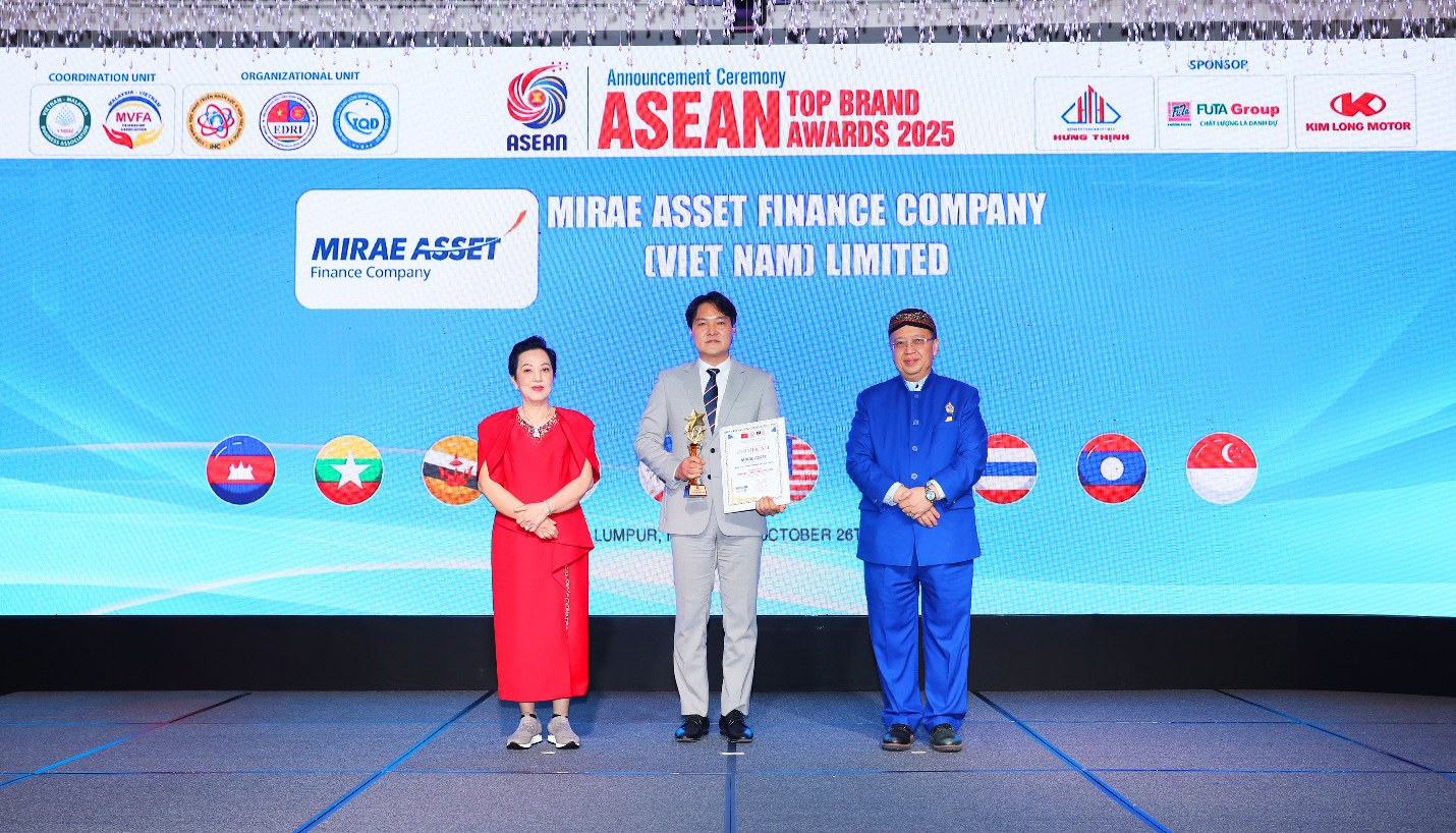 Tại Hội nghị Cấp cao ASEAN lần thứ 47 và Diễn đàn Xúc tiến Thương mại – Đầu tư Việt Nam – Malaysia 2025, diễn ra từ ngày 25 – 28/10/2025 tại thủ đô Kuala Lumpur, Malaysia, Công ty Tài chính TNHH MTV Mirae Asset (Việt Nam) đã được vinh danh trong Top 10 Sản phẩm – Dịch vụ Chất lượng ASEAN 2025 (ASEAN Quality Products and Services Awards 2025).