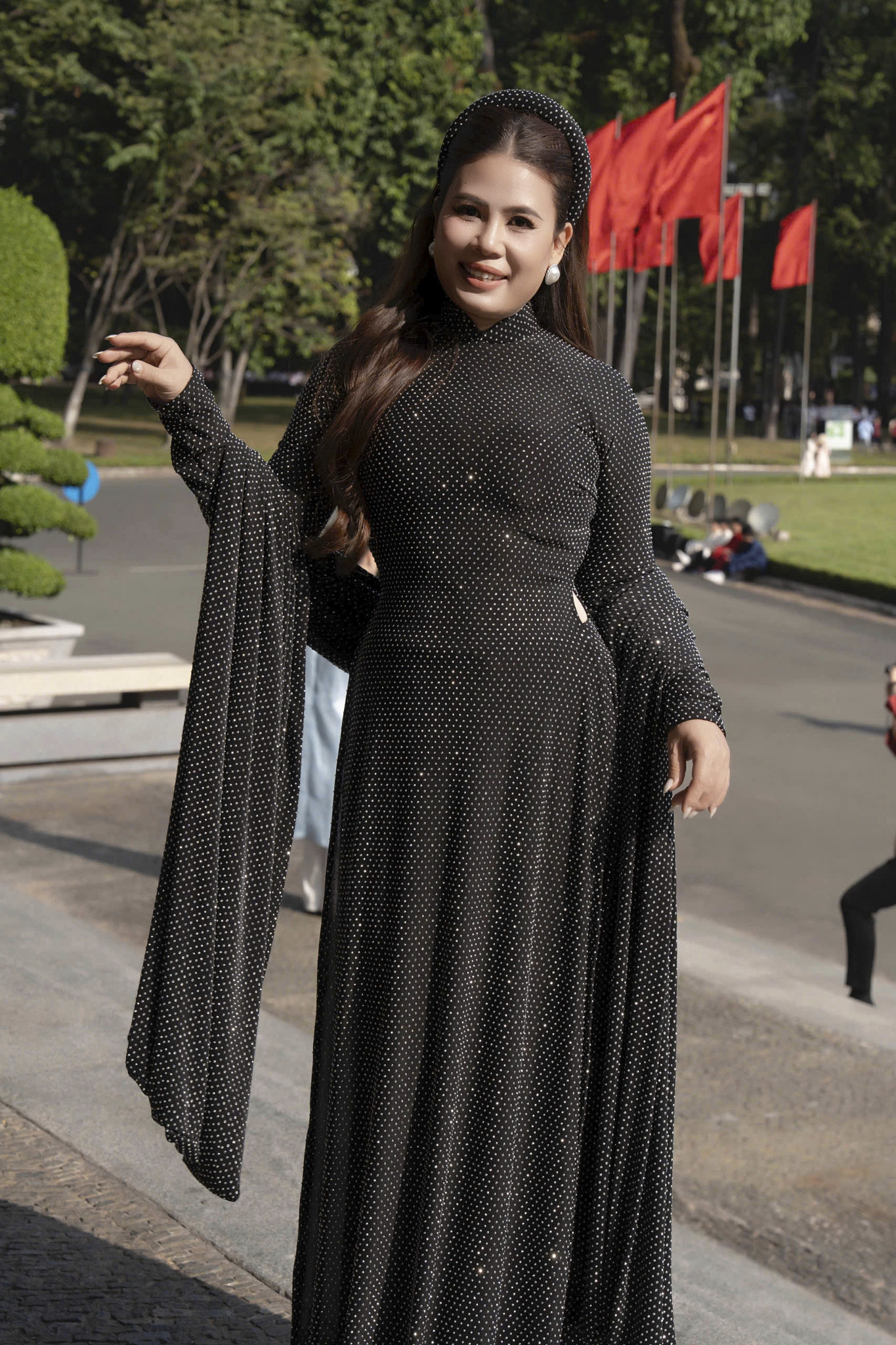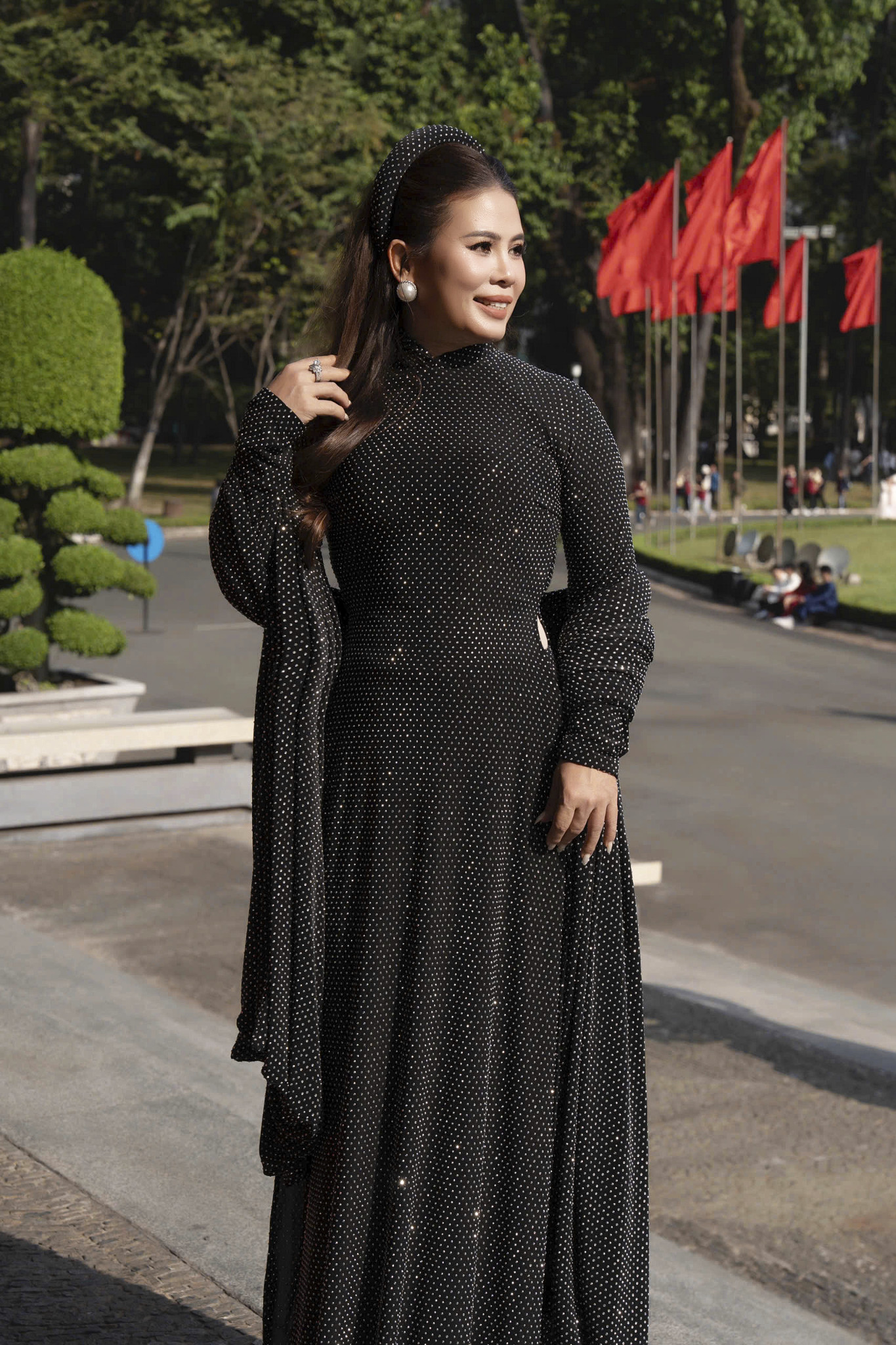 Dù tà áo có những đường nét thiết kế mới mẻ, nhưng ở chị vẫn toát lên trọn vẹn nét dịu dàng, đằm thắm đặc trưng của người phụ nữ Cố đô. Tà áo dài không chỉ đơn thuần là trang phục, mà còn là cách người "nữ tướng" ấy tôn vinh vẻ đẹp truyền thống, giữ gìn nét văn hóa dịu dàng của người phụ nữ Việt Nam ngay cả trong nhịp sống kinh doanh sôi động.